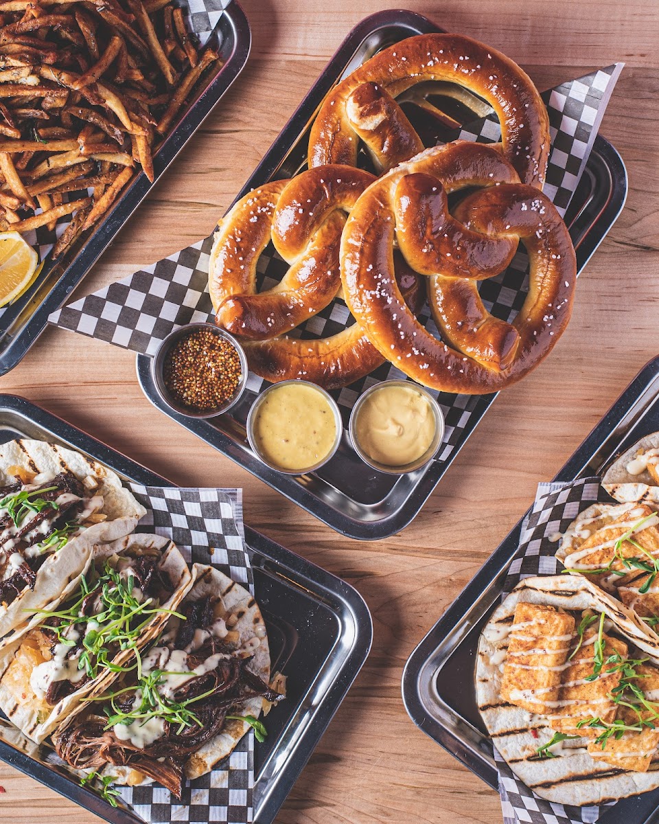 The menu at Royal City Brewing & Beer Hall is a thoughtful mix of comfort and flavor. If you’re in the mood for hearty eats, try the Sicilian Sausage with French Fries or Pretzels paired with your favorite brew. For something more indulgent, the Fried Chicken Sandwich hits the spot every time. Vegetarians and vegans are not left out either, with plenty of vegetarian and vegan options available, making it a welcoming spot for every palate.